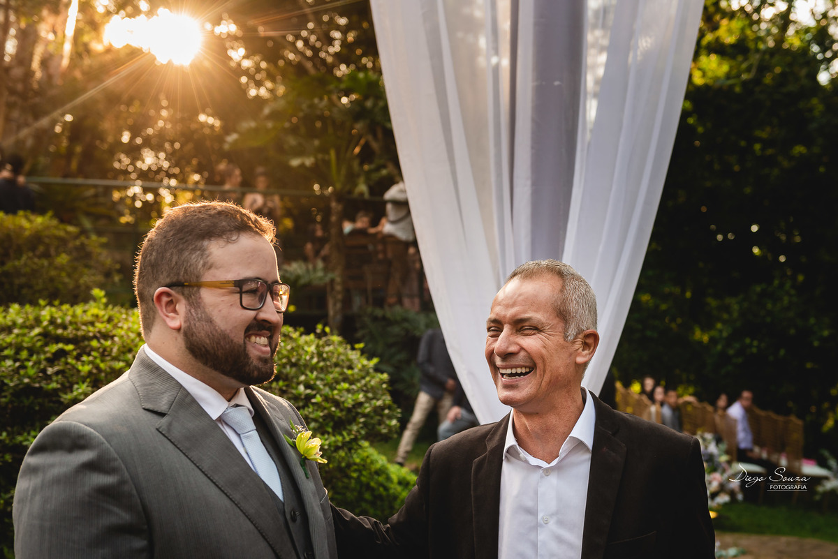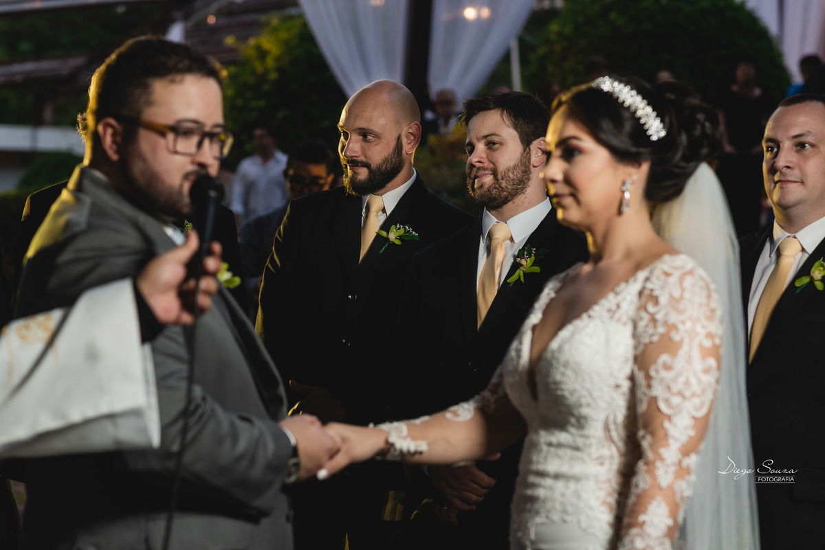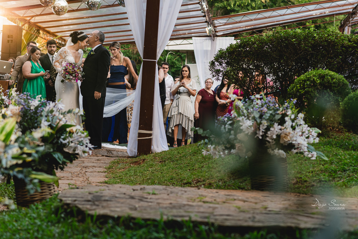 Sabe aquele casal que vive totalmente sintonizado, casal simples, cheios de sonhos, super animados? Assim foi a história do grande dia! Uma total harmonia, tudo perfeito, um lugar lindo cercado pela natureza, um Padre (Padre Henrique) gente fina e super brincalhão, Famílias e convidados que dispensa comentários...