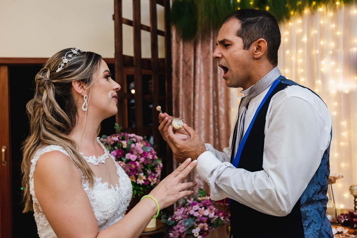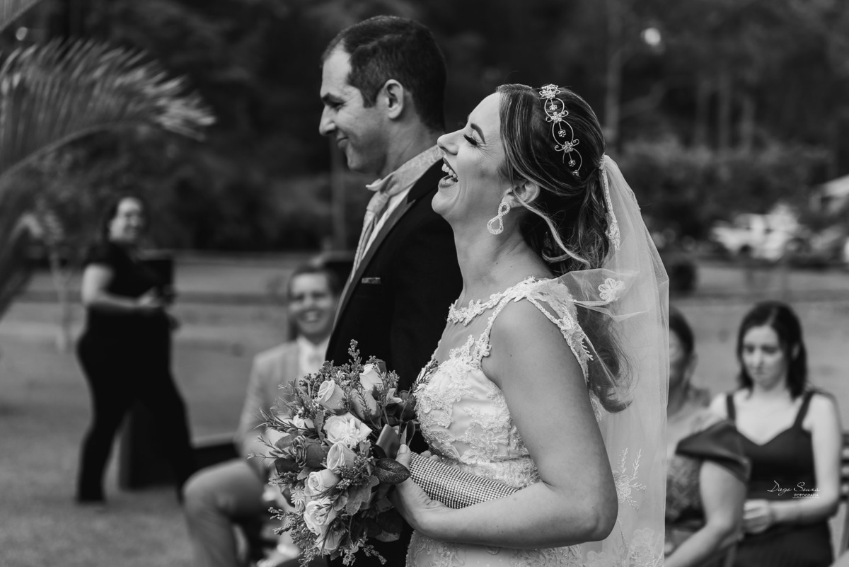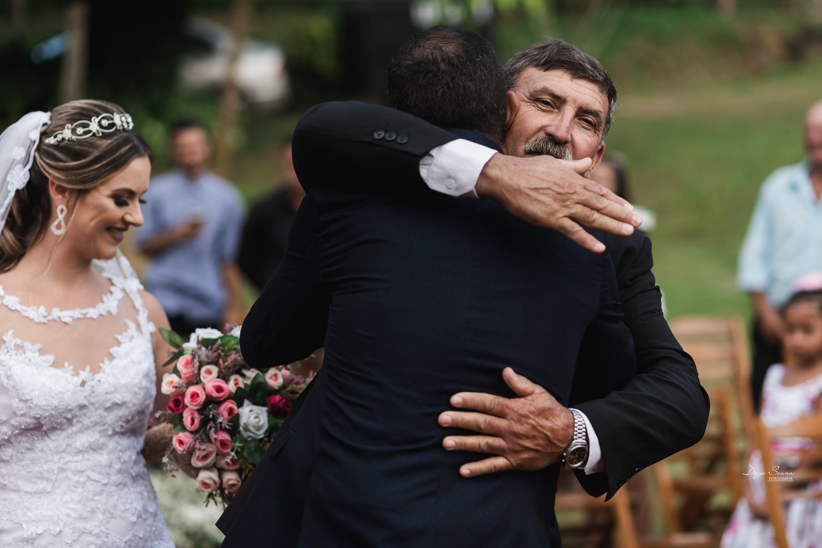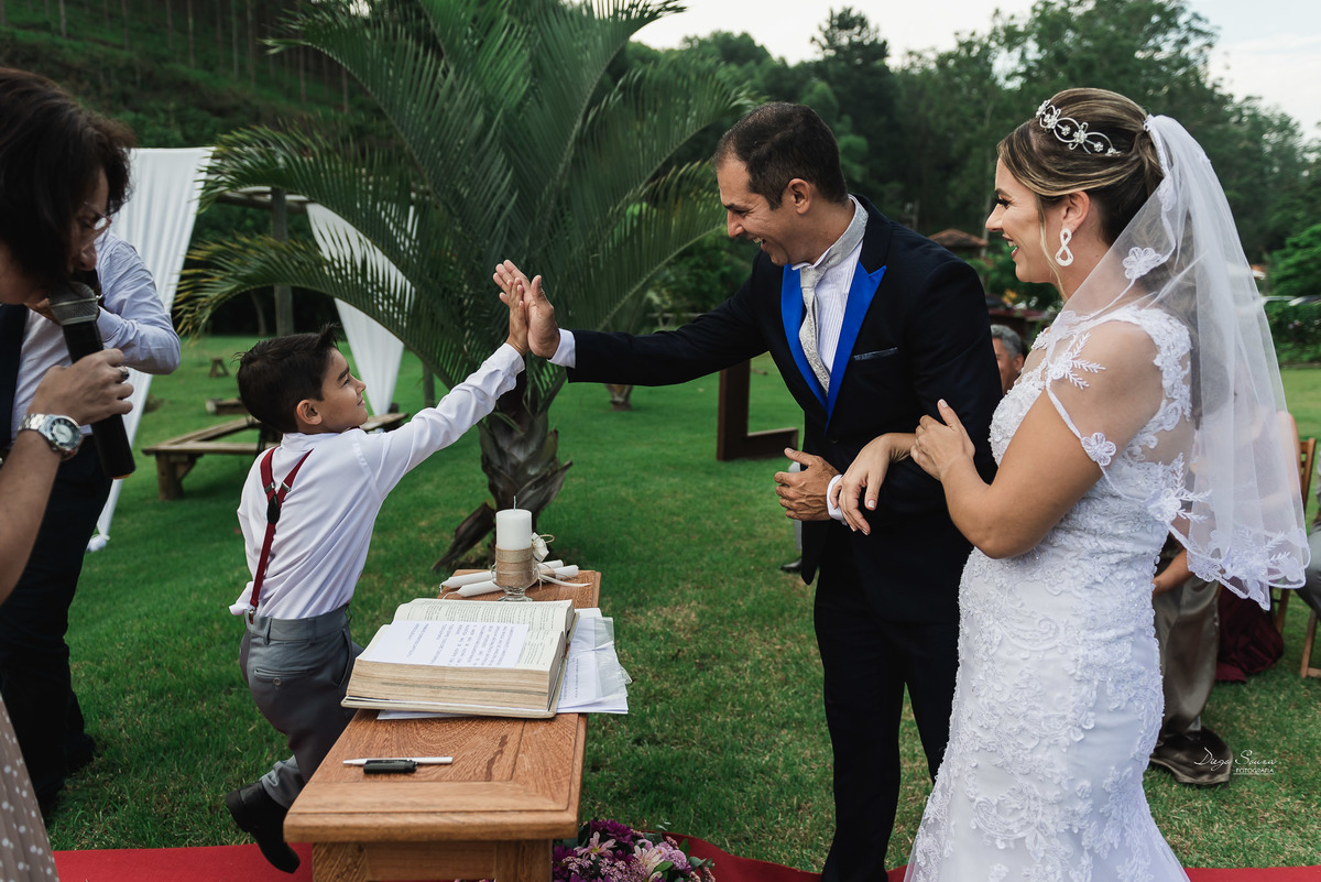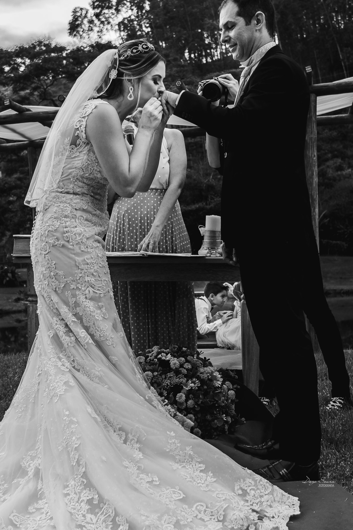 Sabe aquele casamento onde tivemos plano A, B e nos 45 do segundo tempo fizemos um plano C? Foi assim a história da Carol e Roberto, conversamos muita coisa pelo Whatsapp, pois ele é Paraquedista e só chegou a Valença na semana do Casamento, o sonho do Casal sempre foi em fazer a cerimônia em um local aberto, final de tarde, assim planejamos tudo junto com a Assessora Maria Clara e a Decoradora Flávia Quites. Semanas antes tivemos uma troca de locação por conta de uma chuva muito forte e que deixou estragos, fomos para a Flor da Montanha, local belíssimo, e com uma estrutura bem melhor, na véspera caiu o maior toró em Valença e começamos a pensar em fazer a cerimônia dentro do salão. Amanheceu fechado mais por volta das 10 horas o tempo firmou choveu na cidade mais no local não caiu nem 1 gota e ficou uma luz maravilhosa. No making of da noiva até um filhote de andorinha apareceu na cena. Kkkkk a Cerimônia foi lindíssima, muitas lágrimas, nunca vi um noivo chorar tanto e uma noiva firme tchê. Kkkkkkkk Sou muito grato por ter feito parte dessa história, conheci pessoas maravilhosas e vivemos o sonho desse lindo casal Carol e Roberto.