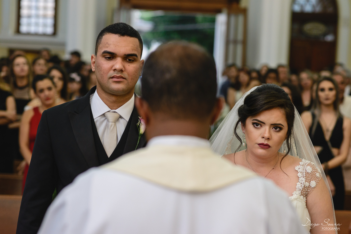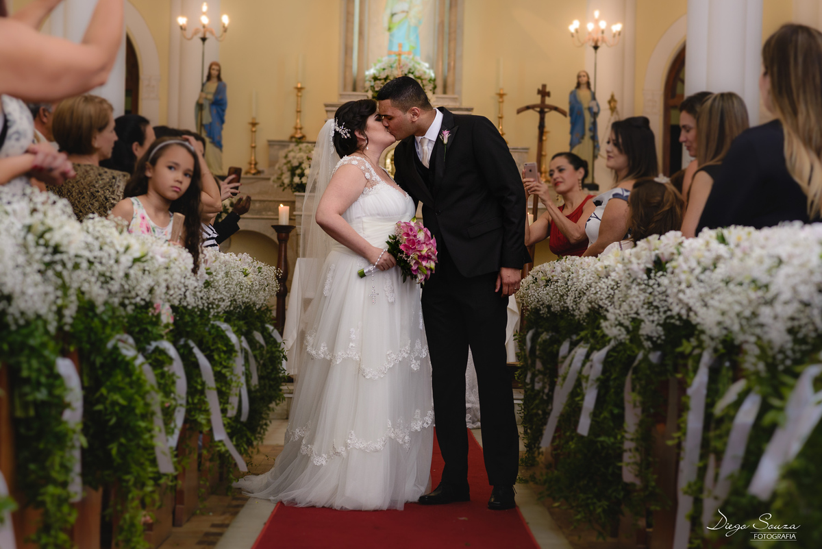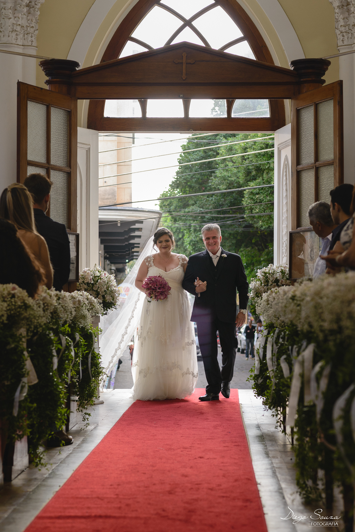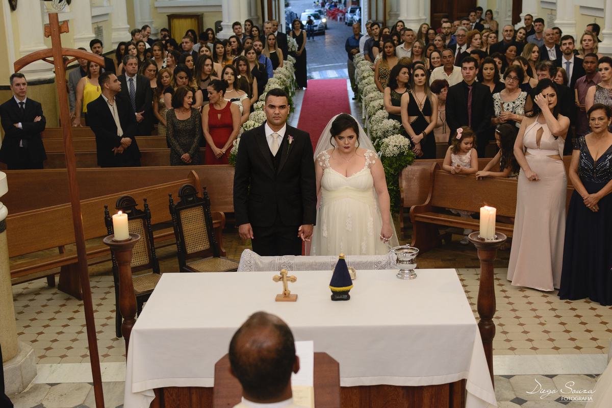 A Cerimônia foi na bela Igreja do Rosário, foi uma Cerimônia linda e muito emocionante, logo após fomos direto para recepção, como a noiva estava grávida, não paramos para fazer aquele ensaio do casal que geralmente fazemos entre a cerimônia e a recepção.