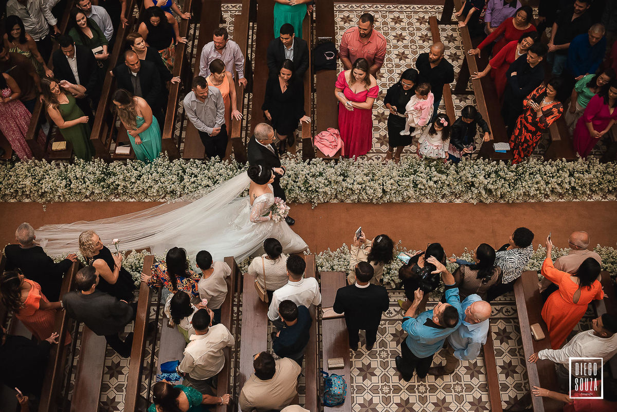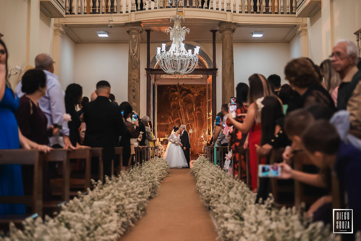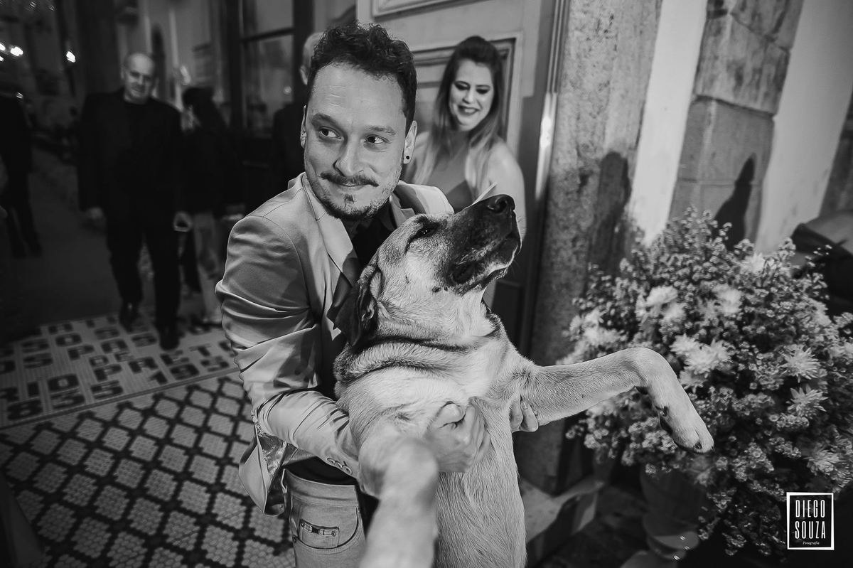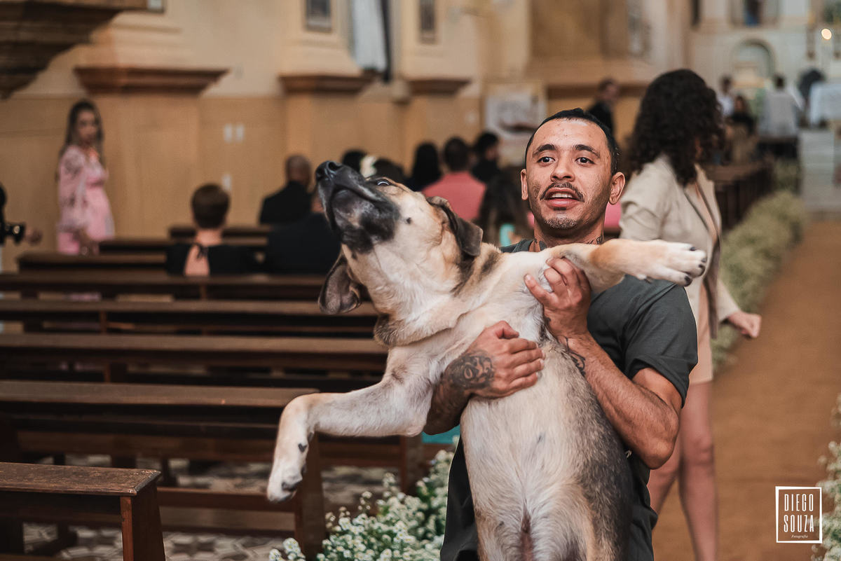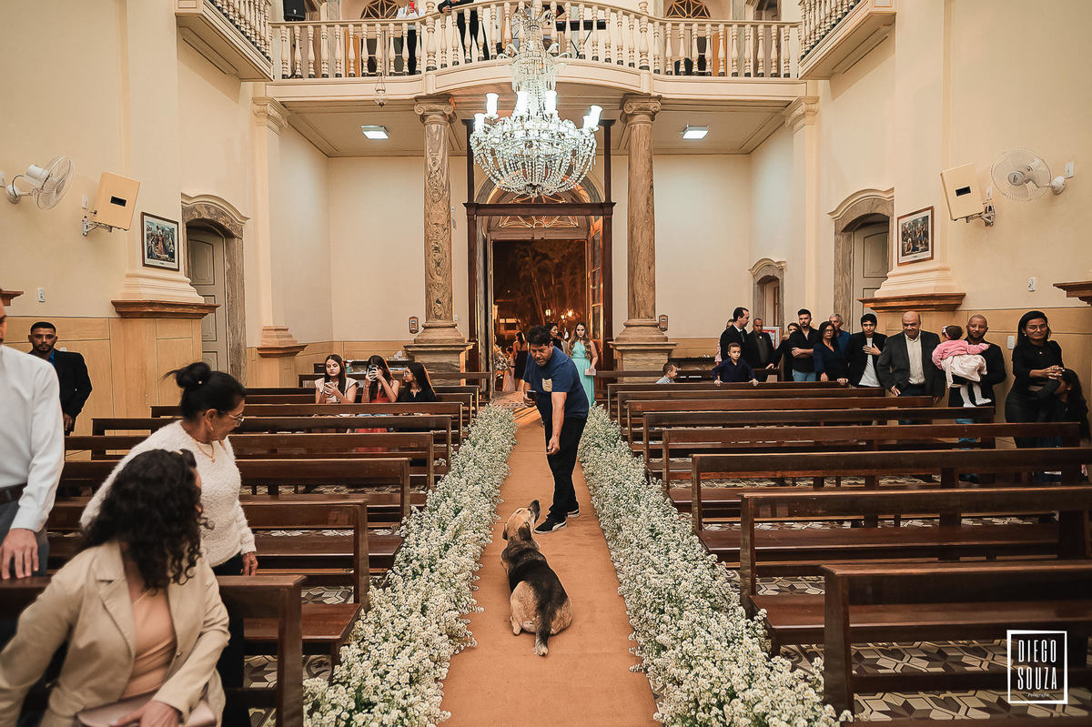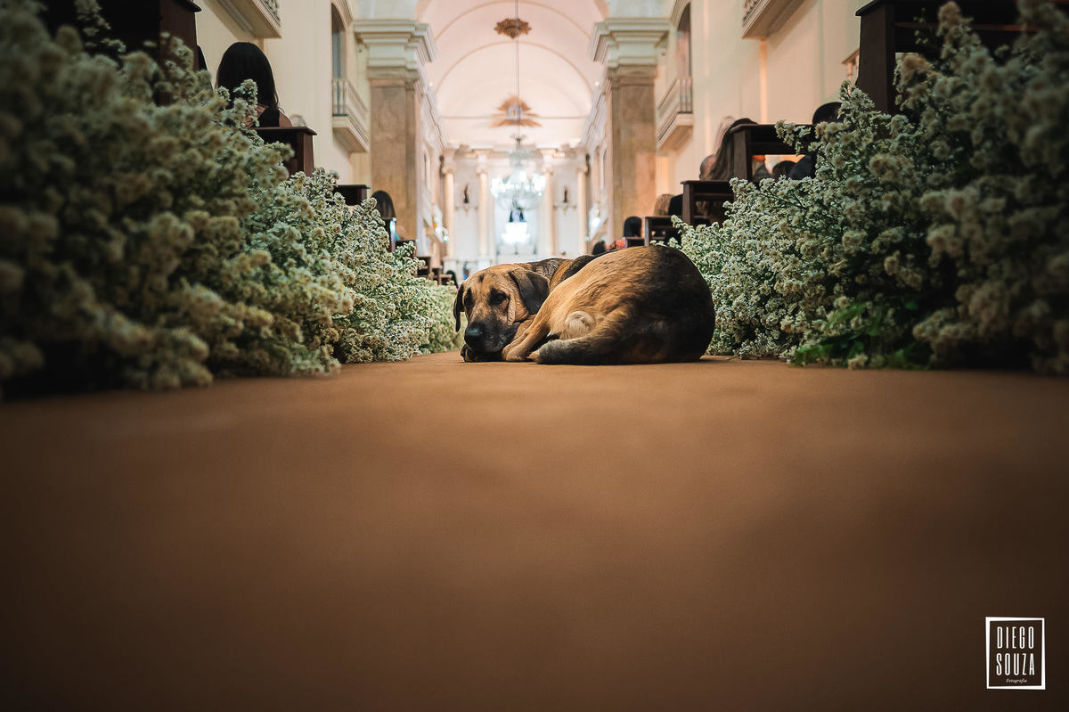 E, como todo grande momento tem sua dose de surpresa, um convidado inesperado fez questão de participar da cerimônia. Um cãozinho entrou na igreja e, por mais que tentassem levá-lo para fora, ele sempre dava um jeito de voltar! 🐶😂 Um detalhe espontâneo que deixou esse dia ainda mais especial e inesquecível.