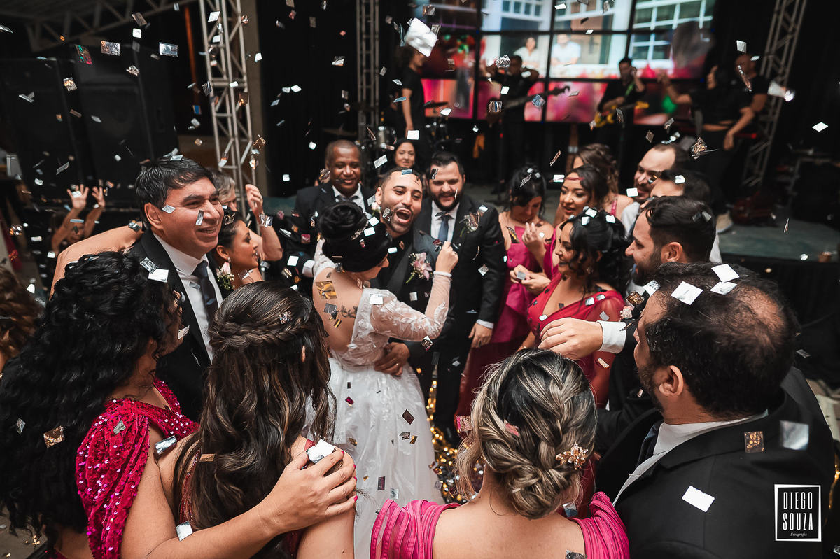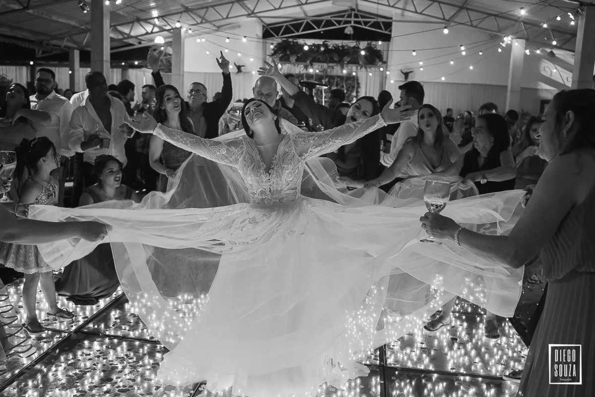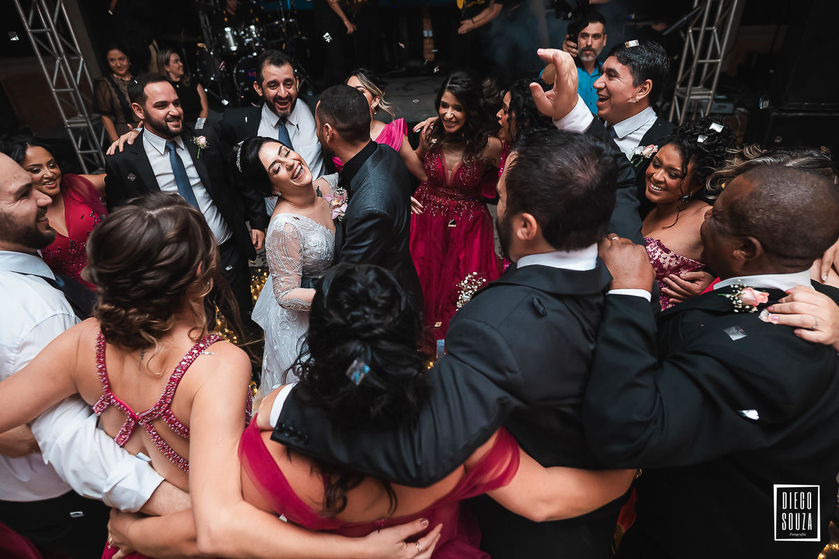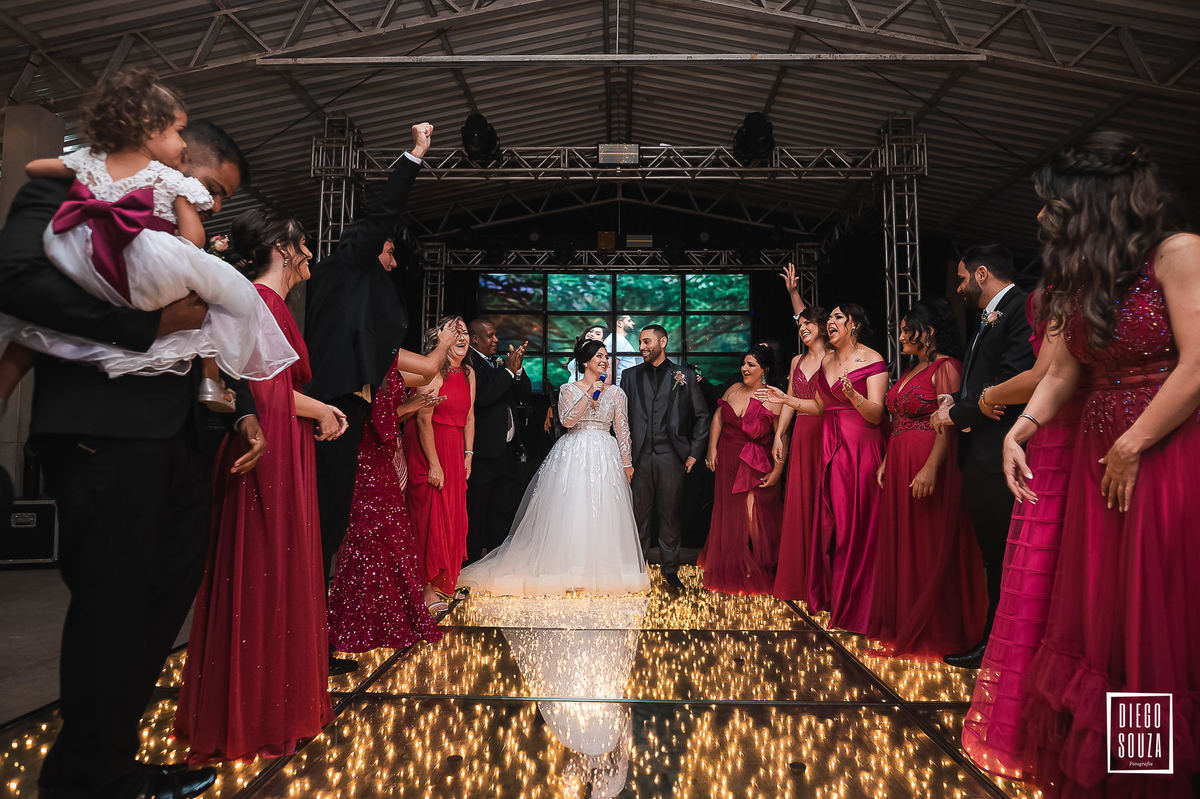 Depois da cerimônia emocionante, veio a celebração no Clube Cruzeiro – e que festa! O casal e seus convidados fizeram da pista um verdadeiro espetáculo de alegria. Música, abraços, energia contagiante… Cada foto conta uma história, cada sorriso é uma lembrança viva desse dia mágico.
